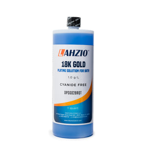 Experience the brilliance of LAHZIO™ 18K Gold Plating Solution, cyanide-free and  ecologically  friendly compared with cyanide based solutions. Developed   for jewelry enthusiasts with a  remarkable  composition of 1.0 g of 99.9% gold ∕ L,  it ensures a bright, consistent, and anti-tarnish finish, perfect for decorative applications. Before the plating process, prepare the surface meticulously, removing all traces of polishing rouge, oil, grease, and fingerprints, with ultrasonic and electro-cleaning techniques. Effortlessly plate over gold, platinum, and nickel, while sterling silver can be beautifully plated with a pre-plate of nickel. Elevate your jewelry creations with the exquisite touch of LAHZIO 18K Gold Plating Solution.